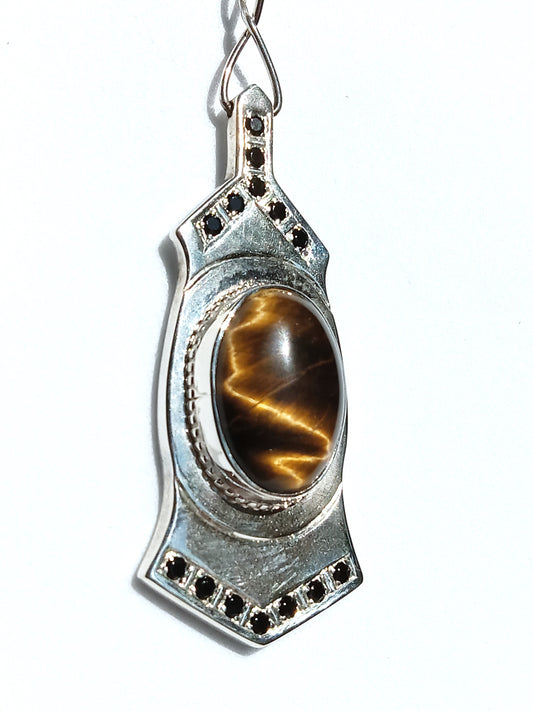 Sterling Silver Sand Casted Tigereye and Black Spinal Necklace