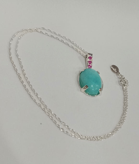 Sterline Silver Amazonite and Pink Tourmaline Pendant