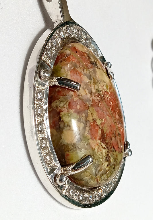Unakite and Cubic Zireconia Sterling Silver Pendent and Earing Set